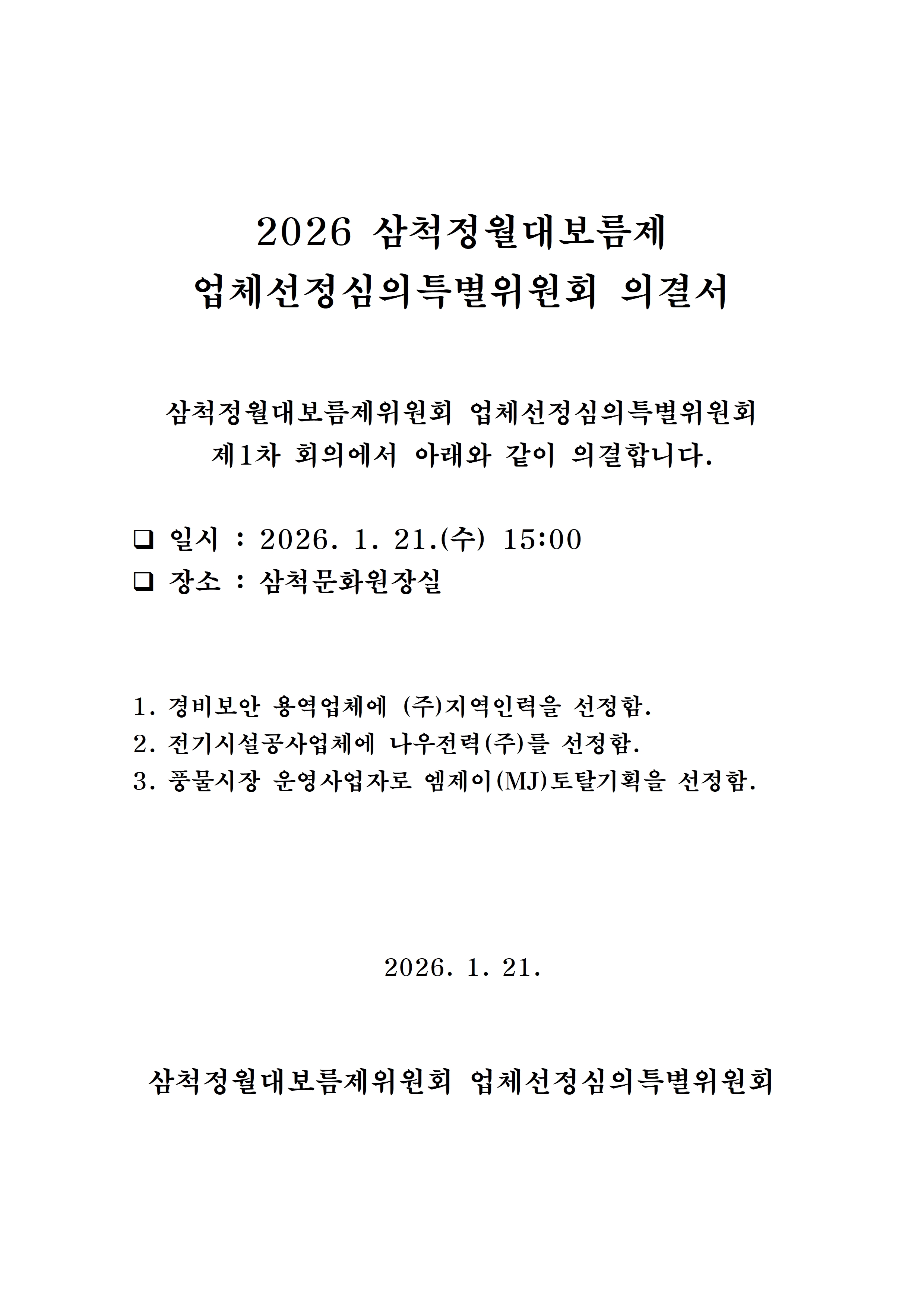 2026 »ïôÁ¤¿ù´ëº¸¸§Á¦ ¾÷ü¼±Á¤½ÉÀÇÆ¯º°À§¿øÈ¸ Àǰá¼